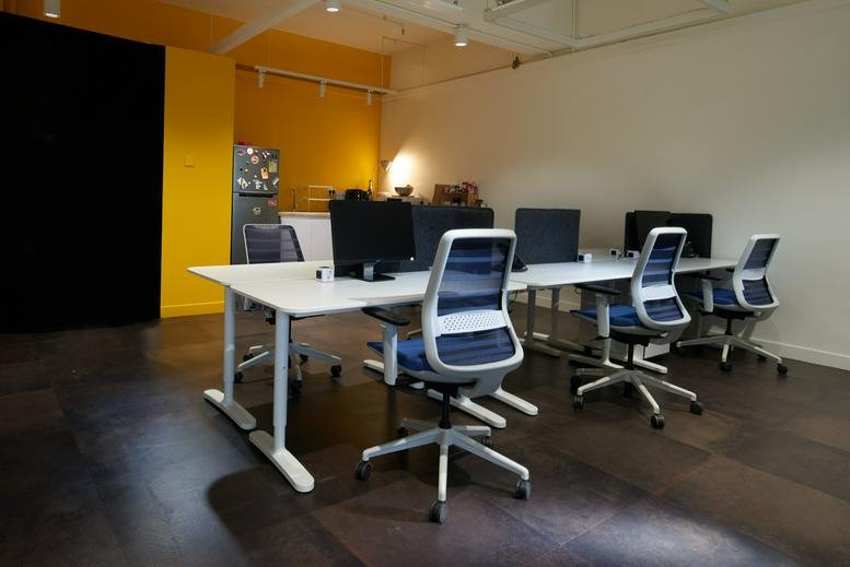 This workspace is outfitted with up to nine desks and includes a communal pantry complete with a coffee machine, a selection of snacks, and facilities for making tea. The carefully curated arrangements ensure essential conveniences are on hand for a dynamic office atmosphere. Complementary benefits include a staffed front desk, assigned parking, an expert in-house management team, and amenities for meal preparation.